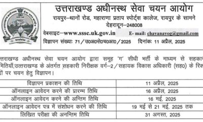 April 16, 2025उत्तराखंड में एक और नई भर्ती निकली है। उत्तराखंड अधीनस्थ सेवा चयन आयोग (UKSSSC) ने असिस्टेंट...