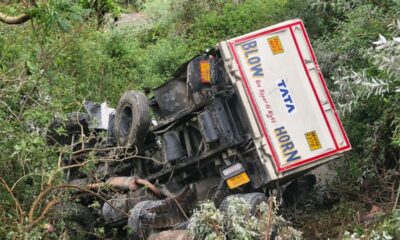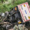 सड़क की दीवार बैठने के कारण 50 मीटर खाई में जा गिरा ट्रक