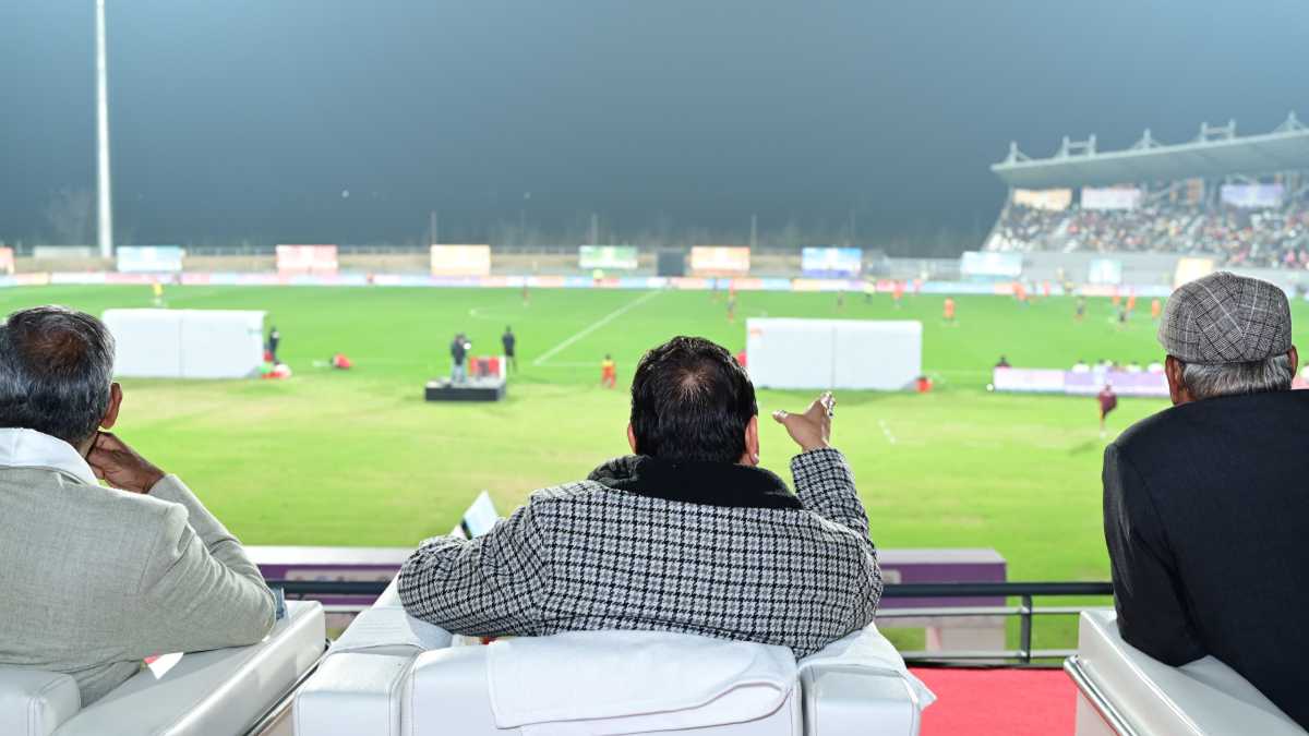 मुख्यमंत्री पुष्कर सिंह धामी ने बुधवार को हल्द्वानी स्थित गौलापार स्पोर्ट्स स्टेडियम में आयोजित हो रहे 38 वें राष्ट्रीय खेलों की विभिन्न व्यवस्थाओं का निरीक्षण किया। इस अवसर पर मुख्यमंत्री ने स्टेडियम में उत्तराखंड एवं दिल्ली के मध्य खेले गए फुटबॉल सेमीफाइनल मैच में खिलाड़ियों से परिचय प्राप्त कर फुटबॉल मैच का अवलोकन भी किया। साथ ही खिलाड़ियों का मनोबल बढ़ाते हुए उत्साहवर्धन किया।