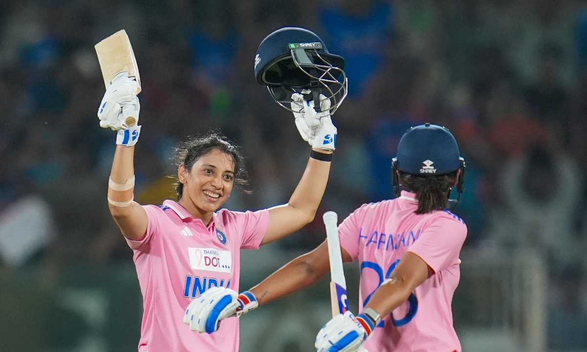413 रनों के लक्ष्य का पीछा करने आई टीम इंडिया की शुरुआत अच्छी नहीं रही क्योंकि सलामी बल्लेबाज प्रतिका रावल 10 रन बनाकर आउट हो गईं। स्मृति मंधाना ने एक छोर संभाला हुआ था, लेकिन दूसरे छोर से धड़ाधड़ विकेट गिर रहे थे। हरलीन देओल भी 11 रन बनाकर आउट हो गईं। कप्तान हरमनप्रीत कौर ने 52 रन बनाए और मंधाना के साथ 121 रनों की पार्टनरशिप की।