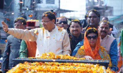 देहरादून में सीएम धामी का मेगा रोड शो, पुष्प वर्षा कर जनता ने किया स्वागत
