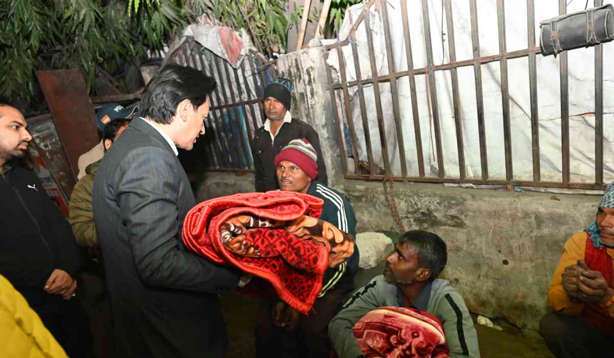नैनीताल : शीतकाल मे ठंड से बचाव हेतु विभिन्न स्थानों पर अलाव जलाने रैन बसेरों में आवश्यक सुविधायें मुहैया कराये जाने व गरीब तथा जरूरत मंद व्यक्तयों को कम्बल वितरित किये जाने हेतु मुख्य मंत्री पुष्कर सिंह धामी द्वारा दिये गये निर्देशों के क्रम में सोमवार की देर सायं आयुक्त/सचिव मा. मुख्यमंत्री, दीपक रावत ने नगर निगम हल्द्वानी के विभिन्न क्षेत्रों का निरीक्षण कर नगर में संचालित राजपुरा स्थित महिला एवं पुरूष रैन बसेरोें की व्यवस्थाओं का जायजा लिया साथ ही ठंड से बचाव हेतु सार्वजनिक स्थानों में जलाये जा रहे अलाव का भी निरीक्षण किया गया। इस दौरान उन्होंने जरूरतमंदों को कम्बल भी वितरित किये गये।