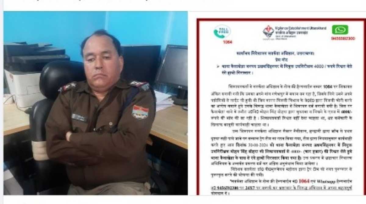 मिली जानकारी के अनुसार उधम सिंह नगर केलाखेड़ा थाने में तैनात दरोगा मोहन बोरा ने बाजपुर के गांव गणेशपुर निवासी एक व्यक्ति से चार हजार रुपये रिश्वत मांगी थी। बताया जा रहा है कि शिकायतकर्ता ने सतर्कता अधिष्ठान के टोल फ्री हैल्पलाईन नम्बर 1064 पर शिकायत अंकित करायी गयी कि उसका अपने गांव गणेशपुर में मकान बन रहा है, जिसके लिये उसने अपने पड़ोसियों से लाईट ली हुयी थी जिस कारण बिजली विभाग के जे0ई0 द्वारा बिजली चोरी करने का आरोप लगाते हुये उसके विरुद्ध थाना कैलाखेड़ा में शिकायत दर्ज करायी गयी है। जिस पर कैलाखेड़ा थाने में तैनात उ0नि0 मोहन सिंह बोहरा द्वारा मुकदमा न लिखने के एवज में 4000/- रूपये की माँग की जा रही है। शिकायतकर्ता रिश्वत नहीं देना चाहता था, भ्रष्ट कर्मचारी के खिलाफ कानूनी कार्यवाही चाहता था ।